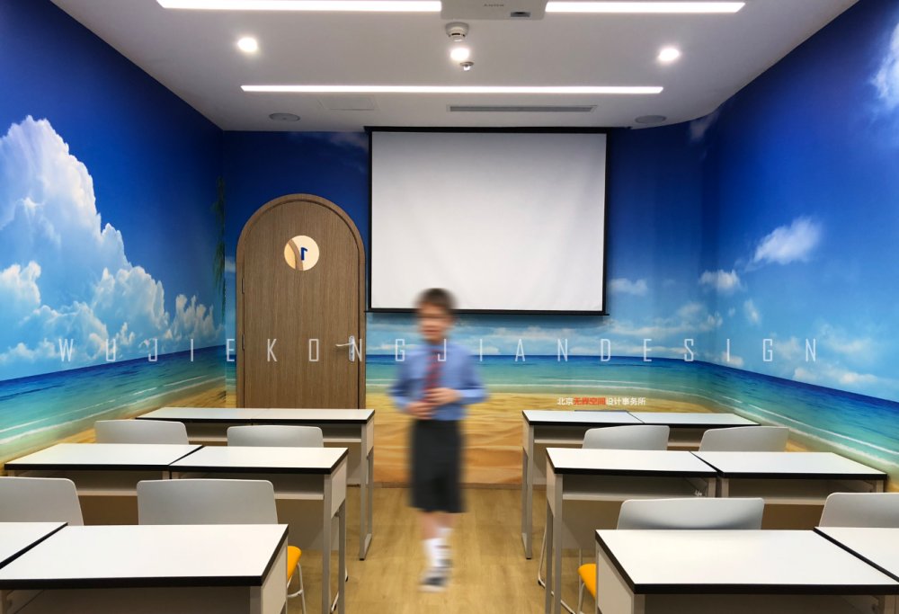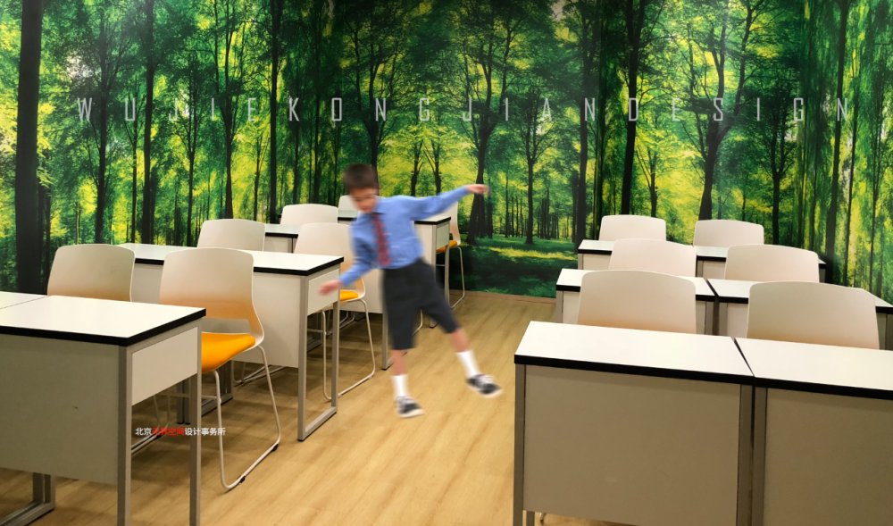 色彩上以白色和原木色為主要基調,運用品牌主題色來作為點綴,不同的教室以不同的主題體現,通過自然元素激發靈感來設置整個空間,也力圖創造一個簡約而不簡單不一樣的青少年學習空間。