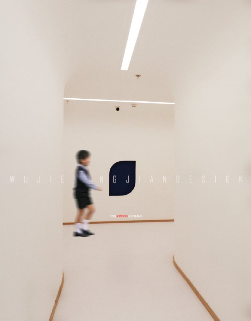 整個空間延續空間自然干練的線條,整潔的體塊,在體塊中細致雕刻加入細節,每間教室都和通道相連接,故此通道的設計也尤為重要,如何能將一條長通道設計的有創意和行走起來沒有距離感和孤獨感,也是此次設計的一個難點,通道的空間組合形式,以往的空間都是傳統的四方結構,如果能夠把傳統的形式加以“破壞”改變它的結構那一定是一個很有意思的空間,頂部的造型弧是柔和的感覺,使人有種輕松感,打破固有思維,特意讓通道往外延伸,形成一種時空隧道,讓空間變得有趣。